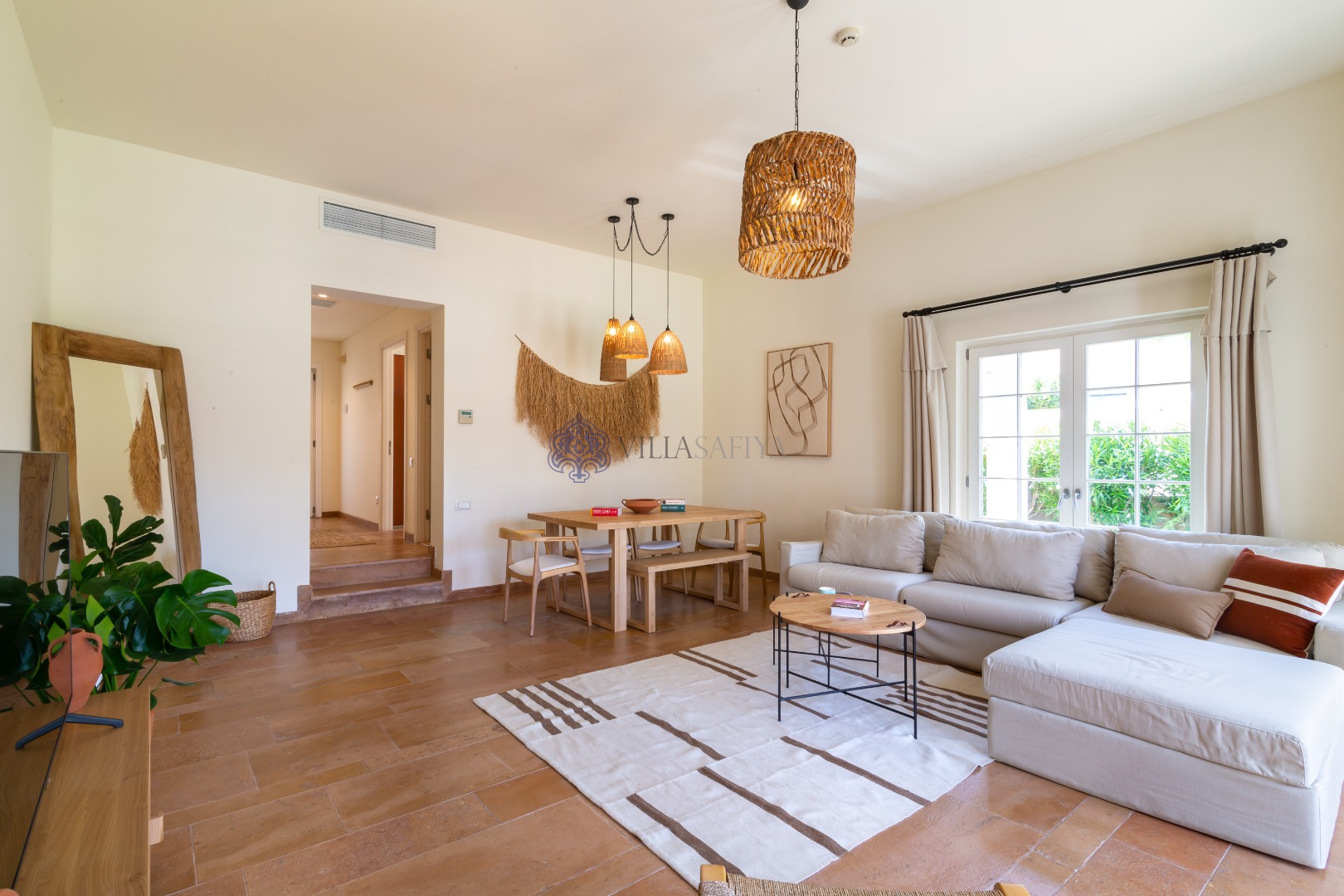 - Özenle seçilmiş mobilyalarla donatılmış geniş bir oturma odası, oturma odasından havuz manzarası, 7 kişilik kanepe, lcd tv ve