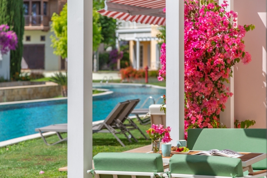 Villa 8 sitenin havuz tarafında yer almaktadır. Havuz villaların arasında bir kanal gibi yer alıyor. Her evin ortak havuzda yüzmek için bağlantısı vardır.