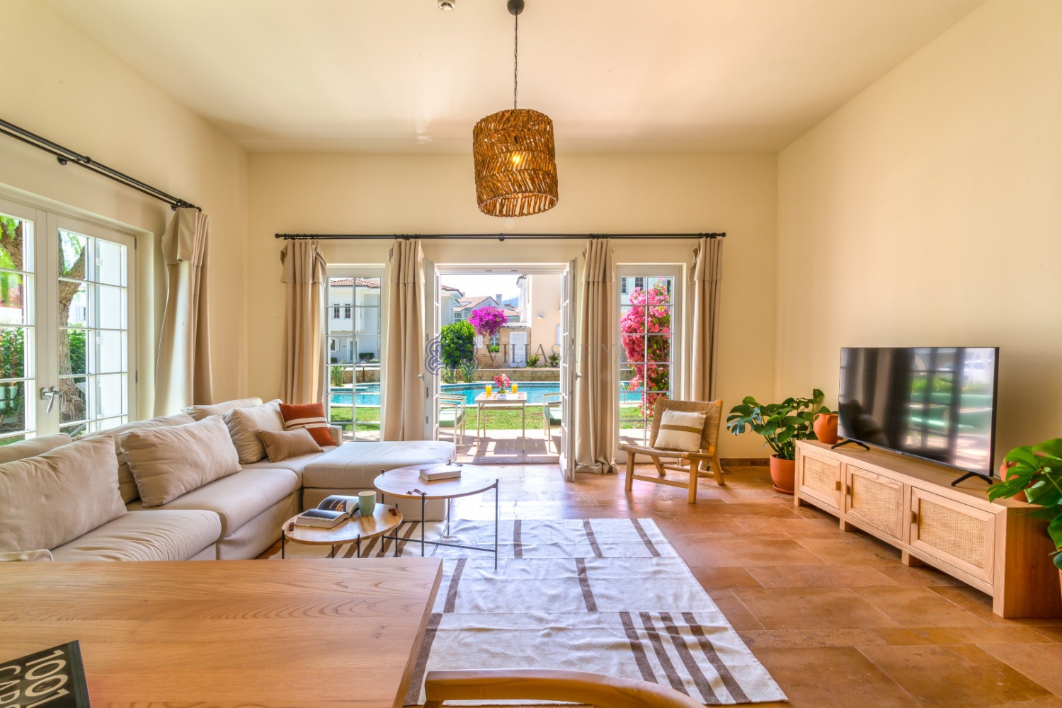 - Özenle seçilmiş mobilyalarla donatılmış geniş bir oturma odası, oturma odasından havuz manzarası, 7 kişilik kanepe, lcd tv ve