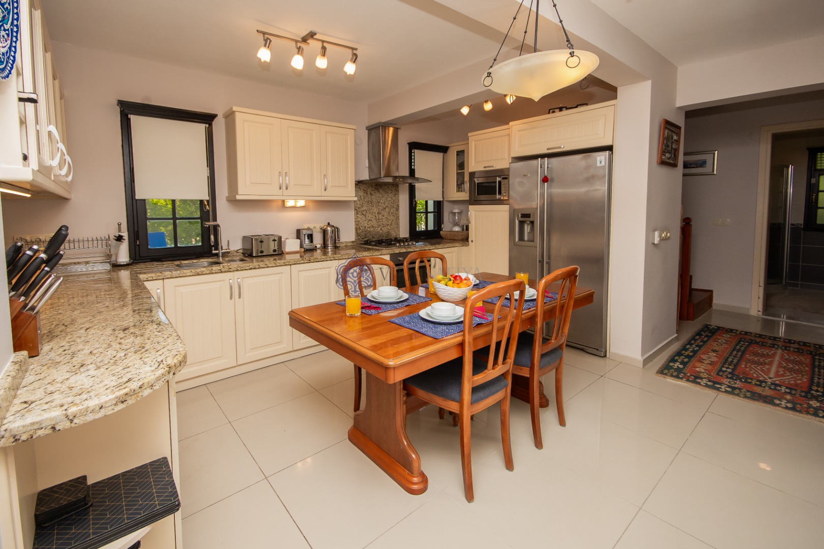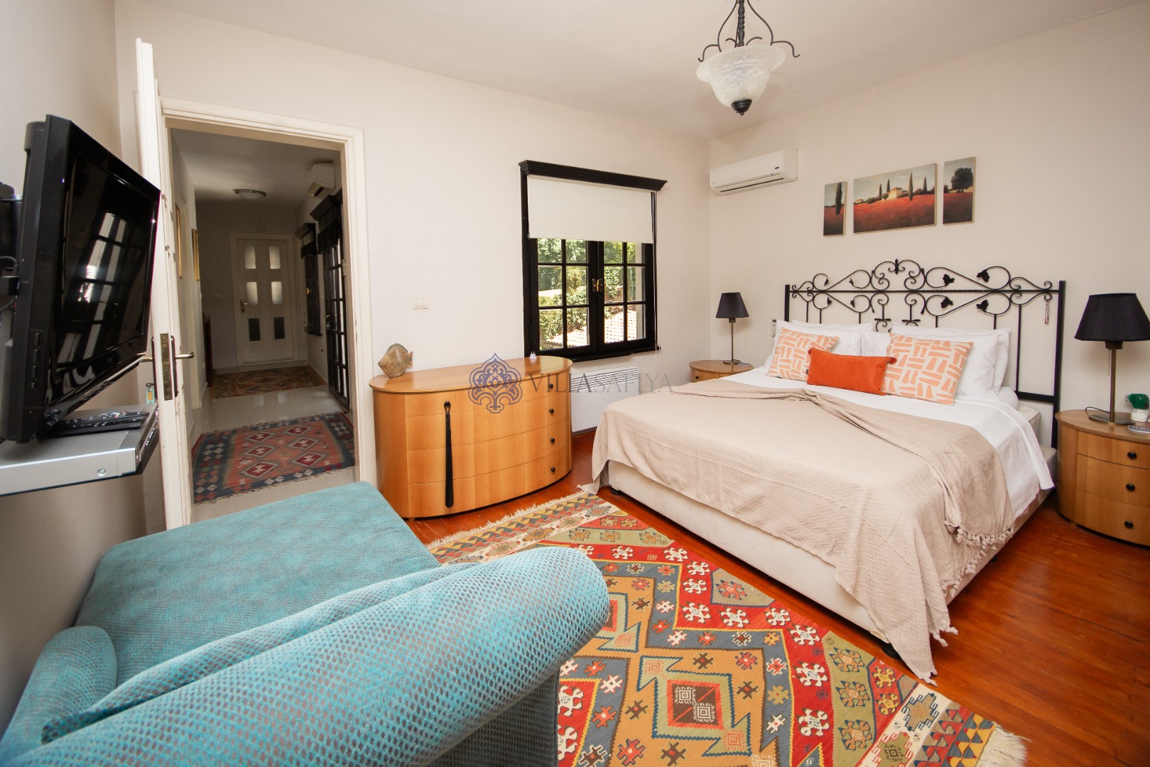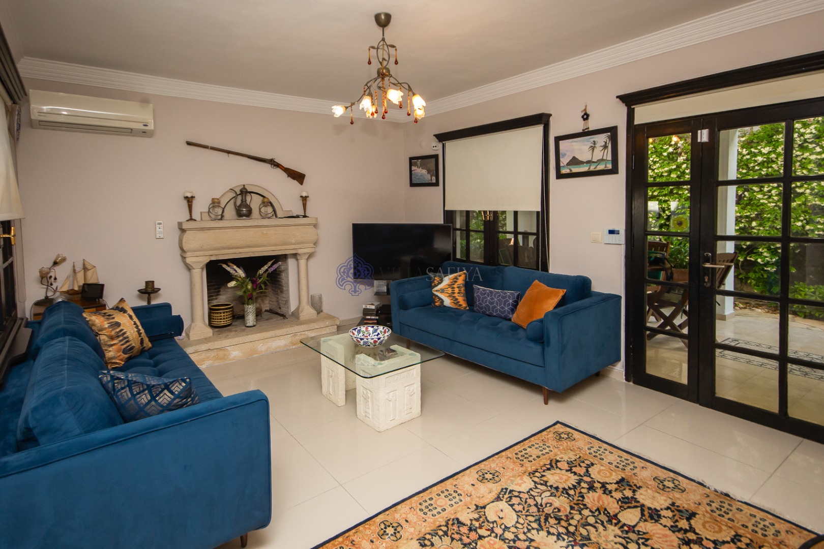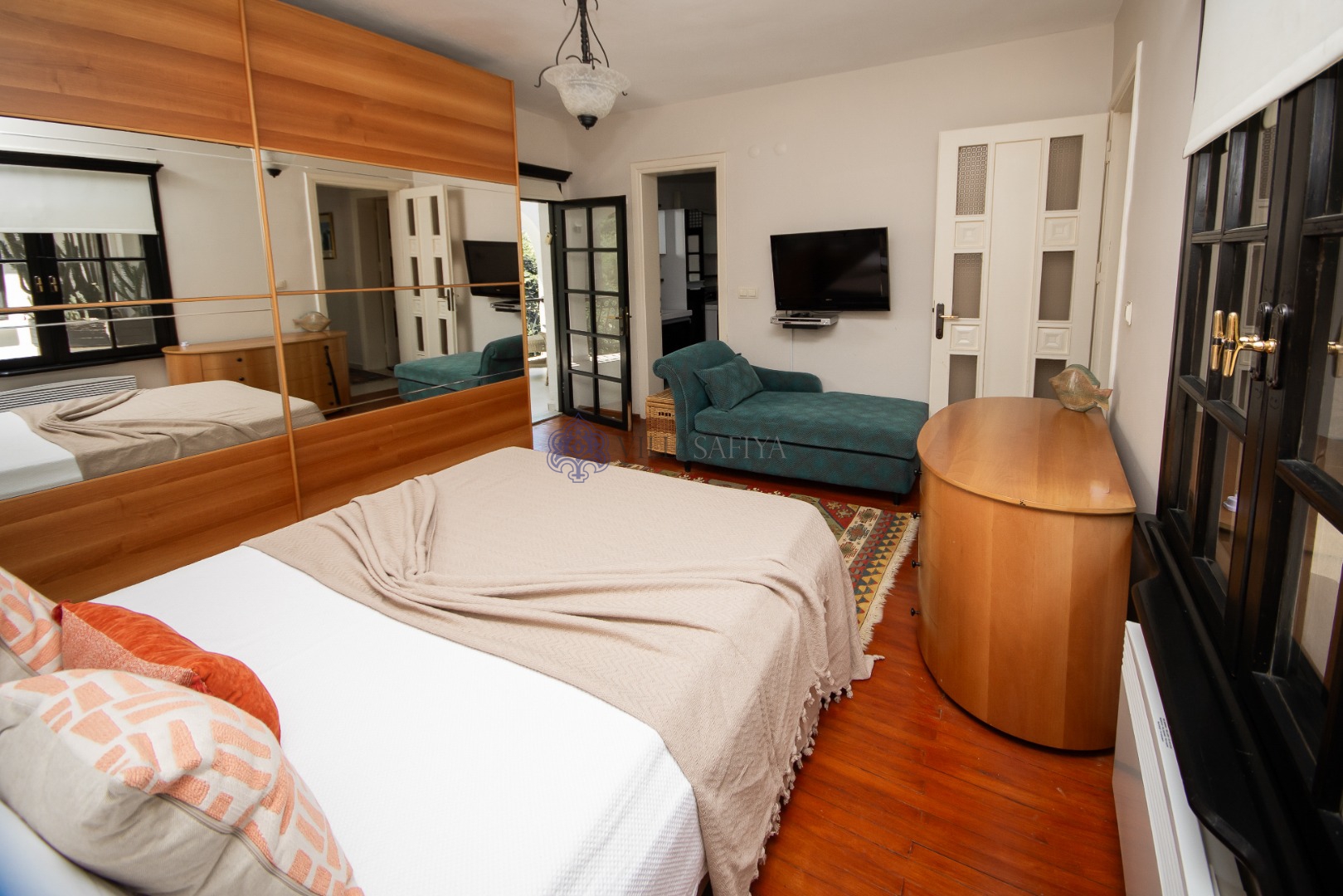 Geniş ve Aydınlık Odalar: Geleneksel Türk kilimleri ve modern mobilyaların eşsiz uyumu.