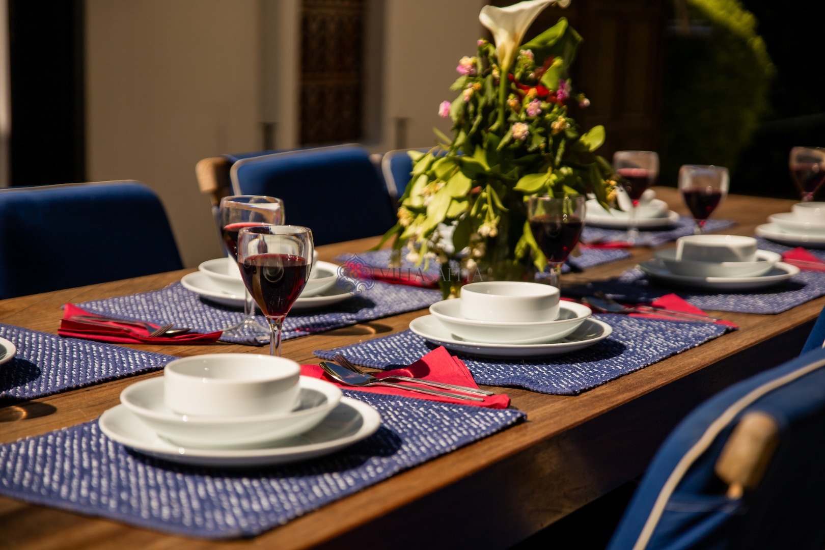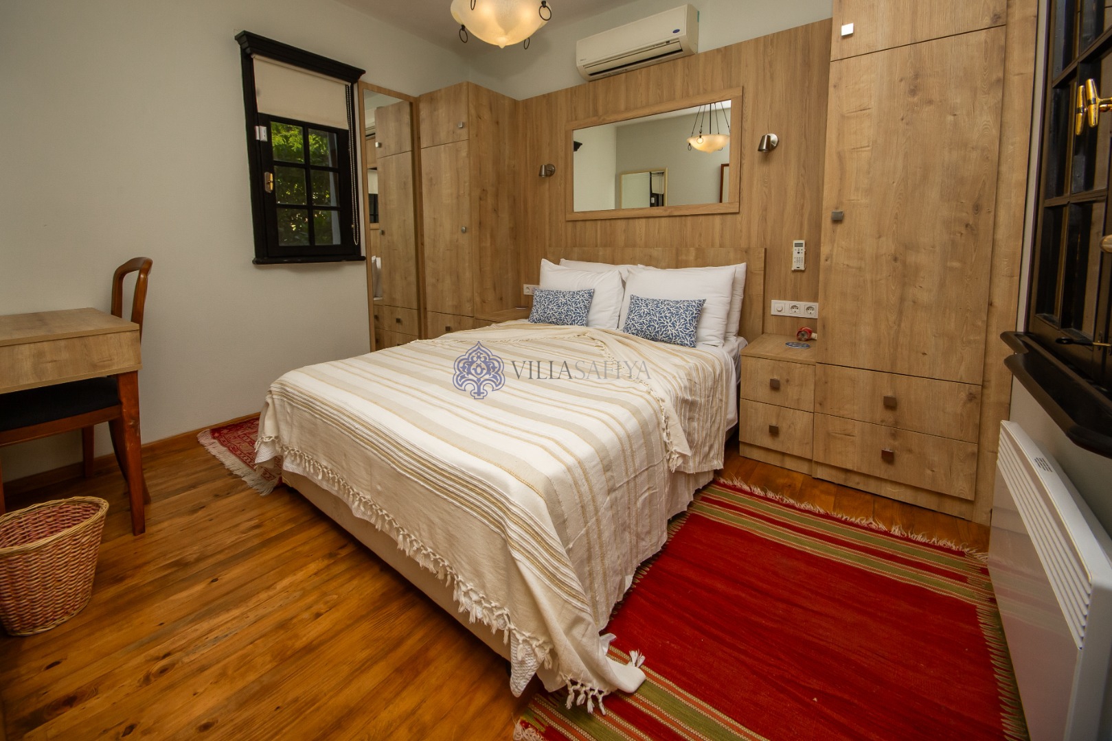 Villanın iç tasarımı, modern konforu yerel motiflerle harmanlayarak sıcak bir "ev" hissi sunuyor: