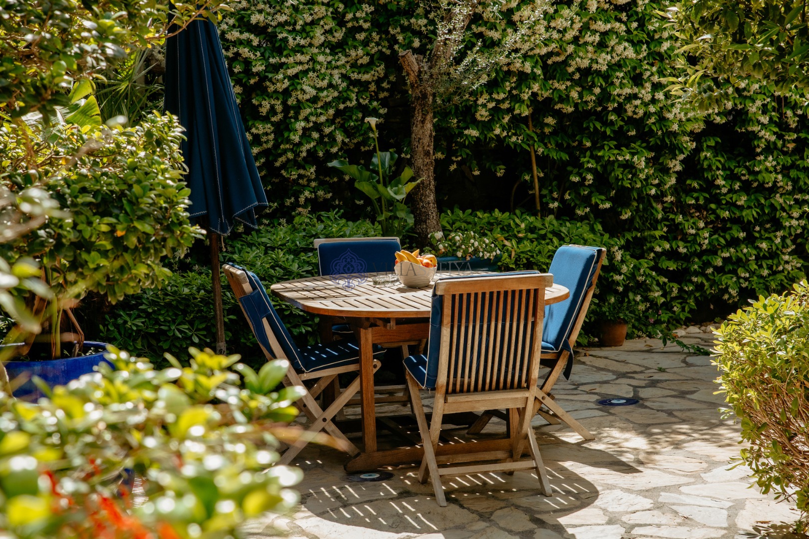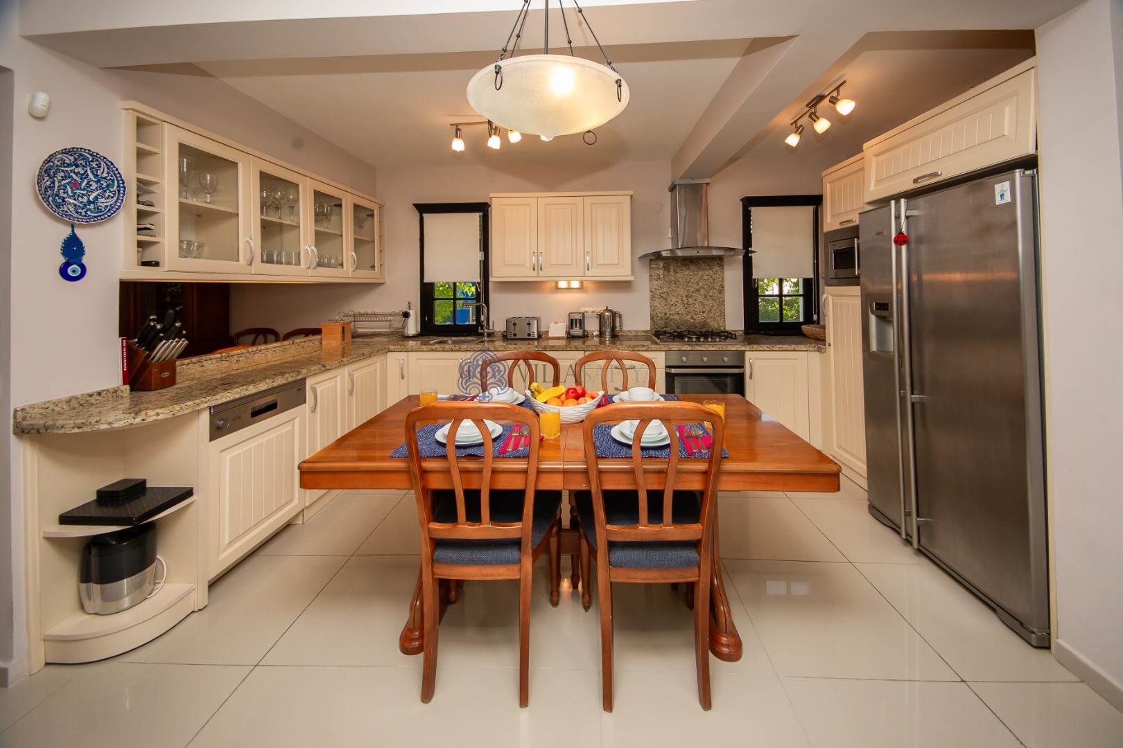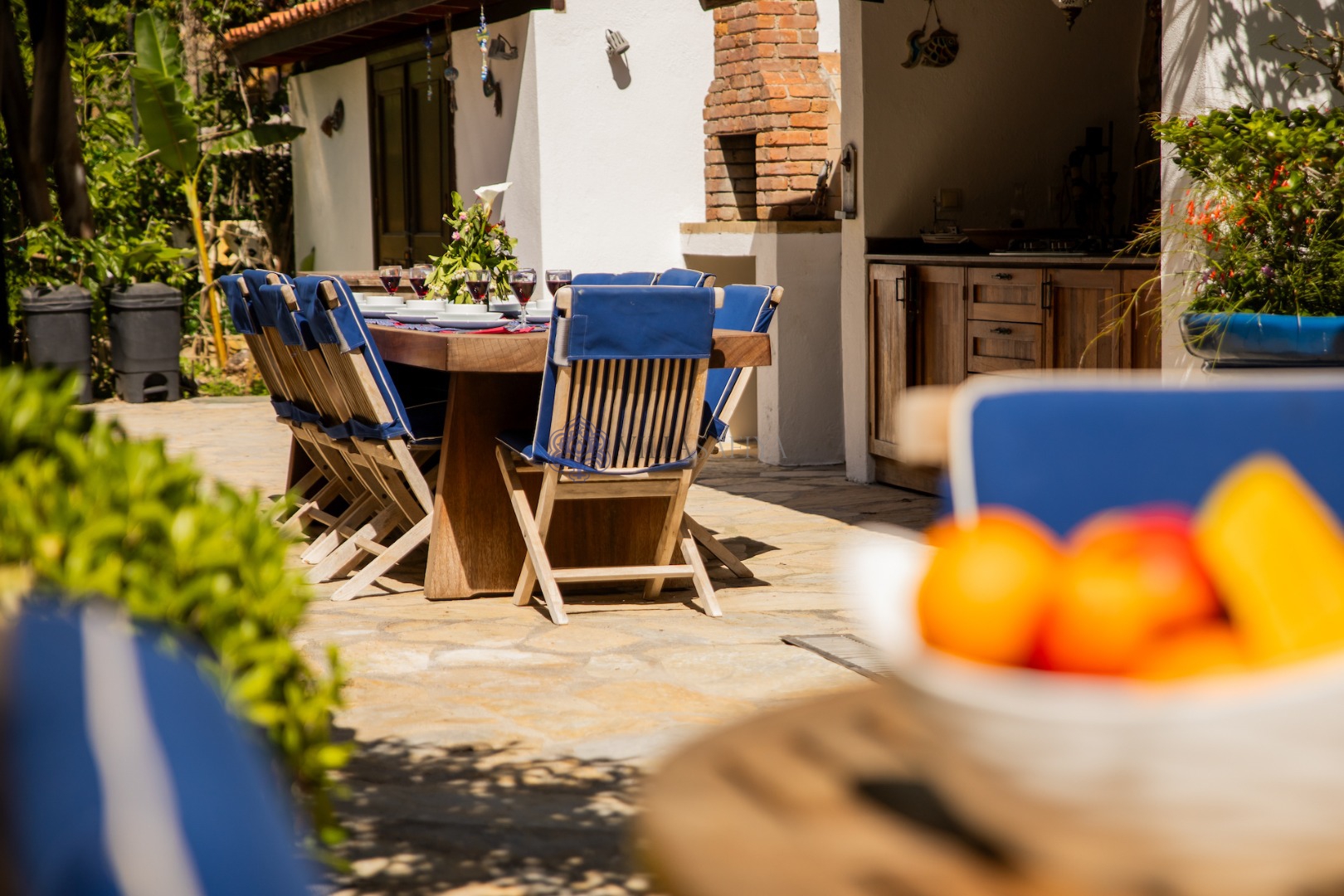 Bu villayı diğerlerinden ayıran en belirgin özellik, açık havada vakit geçirmeyi bir sanata dönüştüren tam donanımlı taş dış mekan mutfağıdır. Geniş ahşap yemek masasında, begonvillerin kokusu eşliğinde yenen akşam yemekleri, tatilinizin en unutulmaz anları olacak.